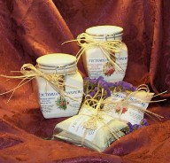 Milk Baths are packaged as a beautiful gift, packed in a white porcelain container. Milk Baths are available in Lavender or Secret Garden Scents. 10 ounces of milk bath fill this container.
