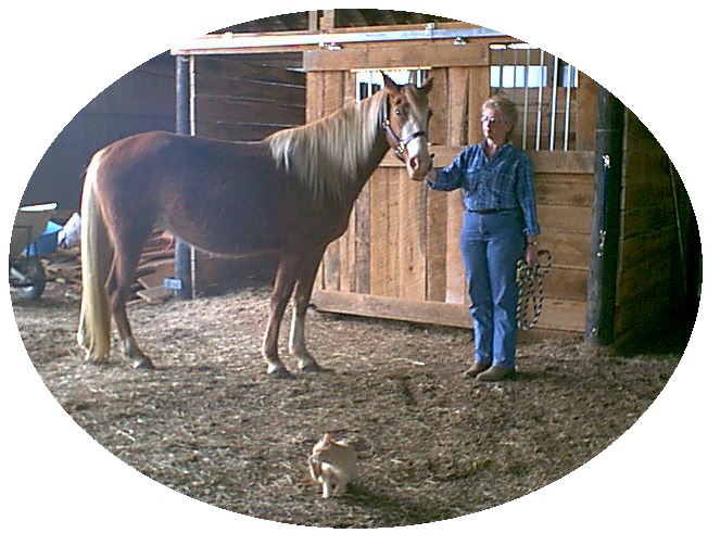 We have Tennessee Walking horses, Suffolk Punch Draft horses, a Standardbred buggy horse and "Moses" our farm donkey.